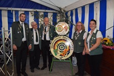 Am Sonntag fand das Annageln der Schützenscheiben bei bestem Wetter statt. Kindenkönigin Katja Mücke und Schützenkönig Uwe Bürst mussten zuerst kniffelige Aufgaben bewältigen, bevor die Scheibe endlich am vorgesehenen Platz fachgerecht angenagelt werden konnte. Katja musste mit Ihrem Vater mit einer Softairwaffe um die Wette schießen, Uwe musste mit einem Nerf-Gewehr Weinkorken von Weinflaschen schießen. Beiden ist die Aufgabe gelungen.